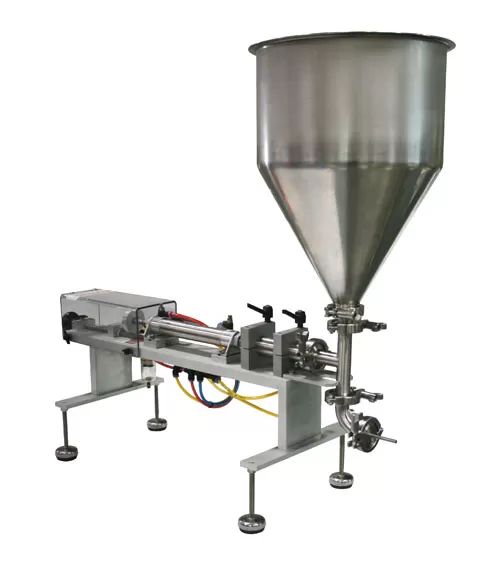 Accutek SVF piston fillers are designed to dispense a wide variety of liquid and semi-liquid products with or without particulates. The assortment of products that piston fillers can accommodate is almost unlimited, ranging from water thin liquids to thick creams and pastes. Though piston fillers can be used to fill thin liquids they are best suited for viscous products that other machine types are unable to dispense. Piston fillers can also be custom tailored to meet almost any characteristics including products such as salsa or large particulate jelly fillings. In addition to being a highly versatile filling machine, the SVF Piston Fillers are constructed with heavy duty stainless steel frames and quick connect sanitary food grade contact parts providing quick and easy cleanup and long lasting durability.
