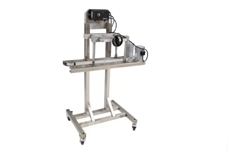 The Accuveyor C Frame Bottomless Conveyor’s primary function is to allow access to the bottom of containers for inkjet or laser coding. They can also be used to capture containers from one conveyor and transport them on to another conveyor. The Accuveyor C Frame Bottomless Conveyor utilizes long side gripper belts, which gives the production line longer access time to the bottom of the container for inkjet or laser coding. The C Frame Accuveyor uses direct drive variable speed motors, so no transmissions, gears, or pulleys for the drivetrain are used, almost eliminating any maintenance.