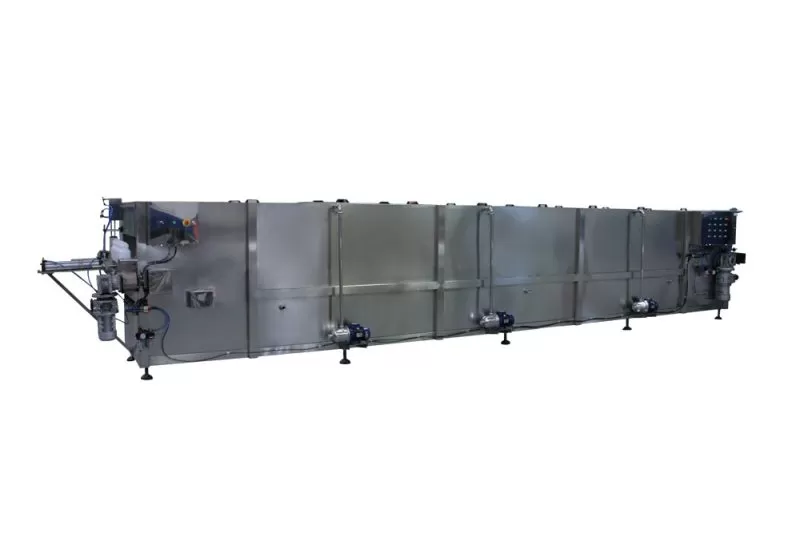 The Accutek Cooling Tunnel is designed for expedite the cooling of product in PET containers on hot fill production lines. The cooling tunnel utilizes a water spray system to rapidly reduce product temperature after filling. This helps to prevent adverse changes to the product that can occur from a prolonged duration at higher temperatures, and is crucial to maintaining the products integrity and flavor. Cooling the containers also allows for easier and quicker downstream labeling and packaging. Cooling tunnel utilizes three stage / zone design for maximum efficiency plus water and power conservation.