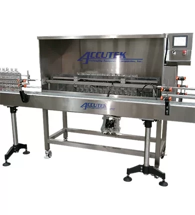 Filling machines are the workhorses of any packaging line, precisely dispensing products into containers. Accutek offers a variety of filling machines to suit different product types and production needs: