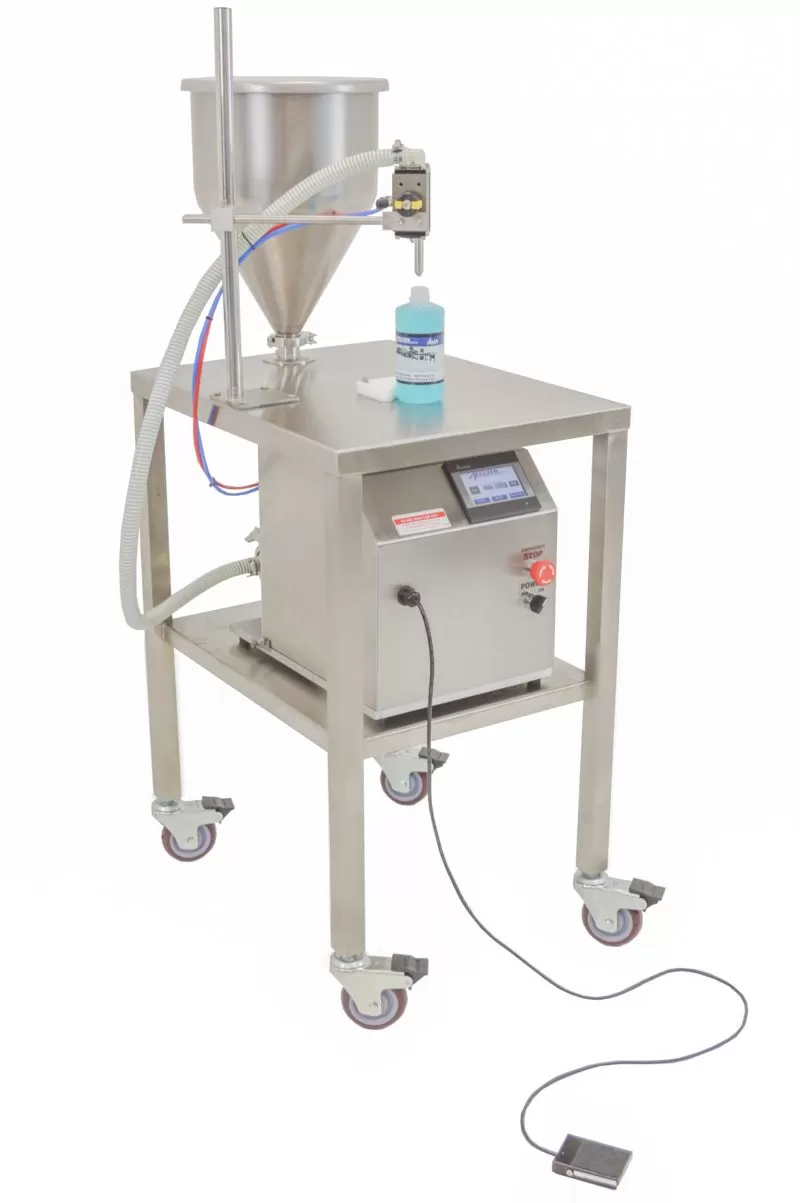 The SAPD-1 is the perfect filler for small production runs and start-ups units. The Semi-Automatic PD Machine includes a 4 or 10gpm Positive Displacment Pump.